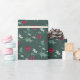 Festive feuillage vert saint feuilles et baies rouges art graphique sur un papier d'emballage de Noël arrière - plan vert foncé. Idéal pour l'emballage cadeau de Noël festif de saison. Conception graphique par www.mylittleeden.com