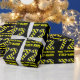 Papier Cadeau Noir & Jaune rayé "72"; 72e anniversaire + nom