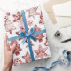 A nostalgic red Christmas gift wrap in vintage toile style, patterned with iced cookie shapes like stars and Christmas trees in delicate line art. The red on white look feels cozy and kitchen fresh, perfect for cookie exchanges, baker gifts, and festive packages. Pair with twine, velvet ribbon, or kraft tags for a classic finish.