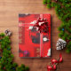 Design avec nuages Auspicious stylisés en blanc + 2 fleurs en 3D + papier tigre bleu foncé coupé avec ombre portée (image imprimée) dans un carré rouge avec ombre portée avec arrière - plan rouge foncé. Conception sur papier d'emballage avec "Happy New Yea" en chinois.