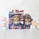 Oncle souriant Sam USA American Icon portant un costume américain et un drapeau américain agitant en arrière - plan