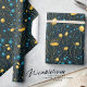 Papier Cadeau Or moderne et bleu Abstrait Floral