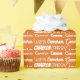 Joli papier d'emballage collage de nom orange pour une fête d'anniversaire ou un baby shower décoré en neuf polices différentes orthographiant un nom personnalisé en blanc. Joli emballage cadeau personnalisé pour enfants avec une typographie amusante en blanc.