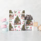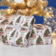 Le motif répété sur ce papier d'emballage de Noël comprend l'image d'un adorable petit ours blanc blanc vêtu d'un chapeau de Père Noël rouge et blanc et d'une écharpe rouge. Il tient une étoile blanche à placer sur l'arbre de Noël décoré. Le texte rouge et vert dit MERRY CHRISTMAS", avec le nom de votre enfant et votre signature ci-dessous. Parmi les autres images incluses dans le motif, on trouve des flocons de neige décoratifs rouges, des cadeaux aux enveloppements éclatants et des sucres de canne attachés avec un arc.