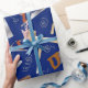 Papier d'emballage bleu avec un motif d'outils de menuiserie tels que scies, ciseaux, mitaines, avions et mallets. Parfait pour les chippies, charpentiers, ébénistes, menuisiers ou do-it-yourself passionnés.