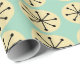 Ce papier d'emballage a un design moderne du milieu du siècle des ovales crème et des étoiles noires sur un champ de vert de mer.