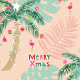 Emballage cadeau de Noël tropical avec palmiers décorés et lettrage "Joyeux XMas". La parties scintillant d'or utilisée dans cette impression est simulée, pas la parties scintillant réelle. Oeuvre originale de Marketa Stengl.