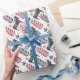 Festif rustique rouge et bleu poussiéreux Cheval d'hiver nordique vacances motif papier d'emballage. Le design rustique présente des chevaux et des fleurs de style nordique dans des tons rouges, bleus et blancs à la mode.