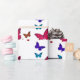 Papillons dansants colorés en rouge, bleu, vert et jaune sur papier cadeau d'emballage blanc.