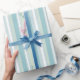 Ce beau papier d'emballage motif à rayures bleu pâle et vert pâle serait parfait pour un baby shower ou un cadeau. Choisissez parmi plusieurs longueurs et styles différents.