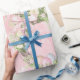 Papier d'emballage floral à thème pastel rose pascal.