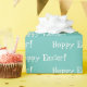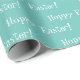 Arrière - plan vert mignon avec la typographie blanche de "Pâques Hoppy !" Papier d'emballage saisonnier. Parfait pour votre emballage cadeau de Pâques.