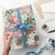 Vignette rétro avec anges, Père Noël, étincelants et verdure.