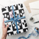 De mignons empreintes de pattes de chiens noirs et blancs en carré. Roulettes de papier d'emballage personnalisées pour les amoureux de les chiens et leurs chiens.