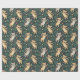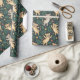 "Patterned wrapping paper featuring illustrations of raccoons and leaves on a green background. The image shows both unrolled and flat views."