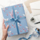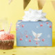 La colombe blanche volant avec un message PEACE rouge sur une corde rayée rouge et blanc un arrière - plan de flocon de neige bleu hiver.