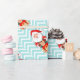 Papier Cadeau Père Noël en pyjama rouge tenant une tasse