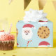 Ce joli emballage cadeau présente Père Noël avec du lait et des biscuits avec un arrière - plan bleu.