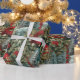 Le papier d'emballage présente une scène délicieuse et nostalgique d'un Père Noël à l'ancienne dans un charmant jardin d'hiver orné de verdure luxuriante de Noël et d'arbres à feuillage persistant majestueux. Le design respire la chaleur et la magie de la période des fêtes.