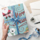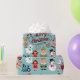 Atelier de père Noël avec des jouets et des elfes Papier d'enveloppement de Noël pour les enfants. Arrière - plan bleu clair. Un joli papier d'emballage sur le thème du jouet avec des chevaux rocking, des nounours, des camions de pompiers, des trains de jouets, des noix de cou, des bas, avec Père Noël et ses elfes. Un grand emballage cadeau de vacances pour les enfants.