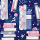 Papier d'emballage enchanté avec pile de livres de contes et de minuscules créatures de conte de fées mignonnes. Parfait pour envelopper les cadeaux pour les filles et les garçons pour déplier leur imagination.