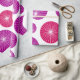 Ce papier d'emballage a un design moderne du milieu du siècle de cercles violets et roses avec des éclats blancs, le tout sur un champ de blanc.