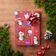 Adorable rouge, vert, pourpre, flocons de neige et pingouins bleu festif papier d'emballage de Noël de Noël de Noël de Noël.