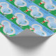 Ce papier d'emballage Noël amusant en juillet fait un enveloppement cadeau de fête ensoleillé parfait pour un rassemblement de billard. Faites-en une extravagance amusante sur le thème du pôle nord avec le Père Noël dans ses troncs de natation à côté d'une piscine cool et de plongée. Jolly Saint Nick est tiré dans un maillot de bain rouge sur ces serviettes bleu cool.