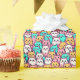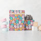 Papier enveloppant dans des chats ludiques de style caricature dans des tons pastel rose, jaune, blanc et turquoise. Les chats ont un design minimaliste avec des yeux larges et, des visages expressifs, arrangés étroitement ensemble dans un motif sans soudure.