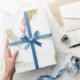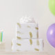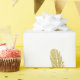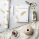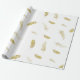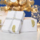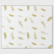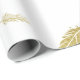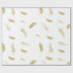Un emballage cadeau élégant avec un motif de plumes dorées flottantes sur fond blanc