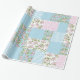 Papier Cadeau Pomme Fleur Rose, Bleu, Vert Faux Patchwork