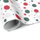 Beau papier d'emballage avec un motif de pois rouges et verts, idéal pour l'emballage cadeau de vos cadeaux de vacances. Illustré et dessiné par Patricia Alvarez.