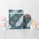 Papier Cadeau poudle paislies plumes fleurs boho motif turquoise