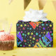 Ce design amusant, vibrant et multicolore comprend le prénom commun "BAILEY" avec un spectre arc-en-ciel coloré comme motif de coloriage. Il dispose également d'un motif coloré aux formes étoiles. Un papier d'emballage vibrant comme celui-ci pourrait être une façon amusante d'envelopper un cadeau donné à quelqu'un du nom de Bailey. [~Z0000353]
