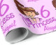Papier d'emballage d'anniversaire avec une petite princesse mignonne avec une tiare et un design de cheveux brun foncé. Personnalisez ce papier d'anniversaire girlie avec votre nom et votre âge. Lit actuellement Princesse Abigail 6. Parfait pour envelopper un cadeau spécial de sixième anniversaire. Uniquement conçu par Sarah Trett.