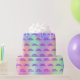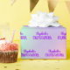 Elégant, girly, style glamour papier d'emballage cadeau de fête pour une Quinceañera, 15e anniversaire. Un arrière - plan tendance irisé avec des couleurs unicorne et arc-en-ciel en rose, violet, or rose, vert menthe. Décoré avec des gouttes de parties scintillant en or rose, rose, violet. Personnalisez et ajoutez un nom et un texte. Lettres violettes.