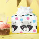 Raccoon avec papier d'emballage rose et bleu poke-a-dots. Mignonne pour les cadeaux pour bébés.