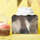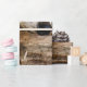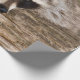 Envelopper le papier avec la photo d'un raton laveur mignon et curieux qui repose son visage sur une rondelle en bois. Adorable.