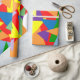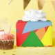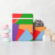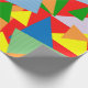 Ce papier d'emballage a un arrière - plan rouge avec des triangles multicolores aléatoires.
