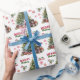 Le motif répété sur ce papier d'emballage de Noël comprend l'image d'un adorable chien Havanais portant un arc rouge festif. Le chien est assis devant un Holiday tree décoré. Le texte rouge et vert stylisé dit MERRY CHRISTMAS", et votre propre signature est dans deux champs pour vous de customiser. Parmi les autres images incluses dans la motif, on trouve des flocons de neige décoratifs rouges, des sucres de canne et une lolly pop menthe poivrée.