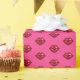 Enveloppe cadeau pour votre Saint Valentin ou cadeaux romantiques amusants, avec une simple icône de lèvres rouges ou de baisers, dans un style d'art pixel bloquant, arrangé en motif à demi-goutte sur un arrière - plan rose. Une image amusante et romantique pour un amateur de vieux jeux et d'images rétro de style 8 bits; une alternative intéressante sur un symbole classique d'amour ou de romance.