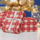 Un buffle rustique rouge tan plaid avec le papier d'emballage de Noël des étoiles.