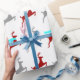 Un motif de rennes dans un rouge sophistiqué (avec une écharpe bleue) et gris sera très beau avec un ruban vert festif, ou argent.
