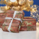 Habillez vos cadeaux avec cette conception vintage d'un cheval et des fleurs de basculage sur un fond en bois. La conception est montrée sur le papier mat, mais d'autres choix sont disponibles.