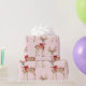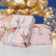 Papier Cadeau Rose pastel mignon avec Cerf et Bow rouge