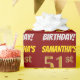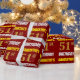 Ce design papier d’emballage comporte un message comme "51ème anniversaire de SAMANTHA!", avec le "51ème" ayant une apparence de couleur fausse/imitation or, et avec le nom et "ANNIVERSAIRE" dans une police amusante et audacieuse. Le nom peut être customisé, et l'arrière - plan est de couleur rouge. Un papier comme celui-ci pourrait peut-être être utilisé pour envelopper les cadeaux d'anniversaire donnés à quelqu'un pour célébrer son cinquante et unième anniversaire. [~Z0000204]