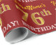Ce design papier d’emballage comporte un message comme "76e anniversaire de prénom!", avec le "76e" ayant une apparence de couleur fausse/imitation or. Le nom peut être customisé, et l'arrière - plan est de couleur rouge. Il pourrait peut-être être utilisé pour envelopper les cadeaux donnés pour le soixante-seizième anniversaire de quelqu’un. [~Z0000178]