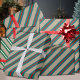 Un papier d'emballage de vacances couleur kraft rustique avec un vert turquoise avec des rayures rouges centrées.