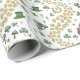 Ce papier d'emballage fantaisiste de St. Patrick's Day présente plusieurs images irlandaises emblématiques, dont des trèfles verts, des pièces d'or shamrocks, une casserole d'or au bout d'un arc-en-ciel, un casquette léprechaun, des champignons verts, des coeurs verts et la bénédiction irlandaise, "Je vous souhaite une chance et une joie infinies !". Le tout dans un motif curviligne amusant.