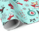 Papier Cadeau Santa Claus Sleigh Reindeer Pine Trees Art Motif